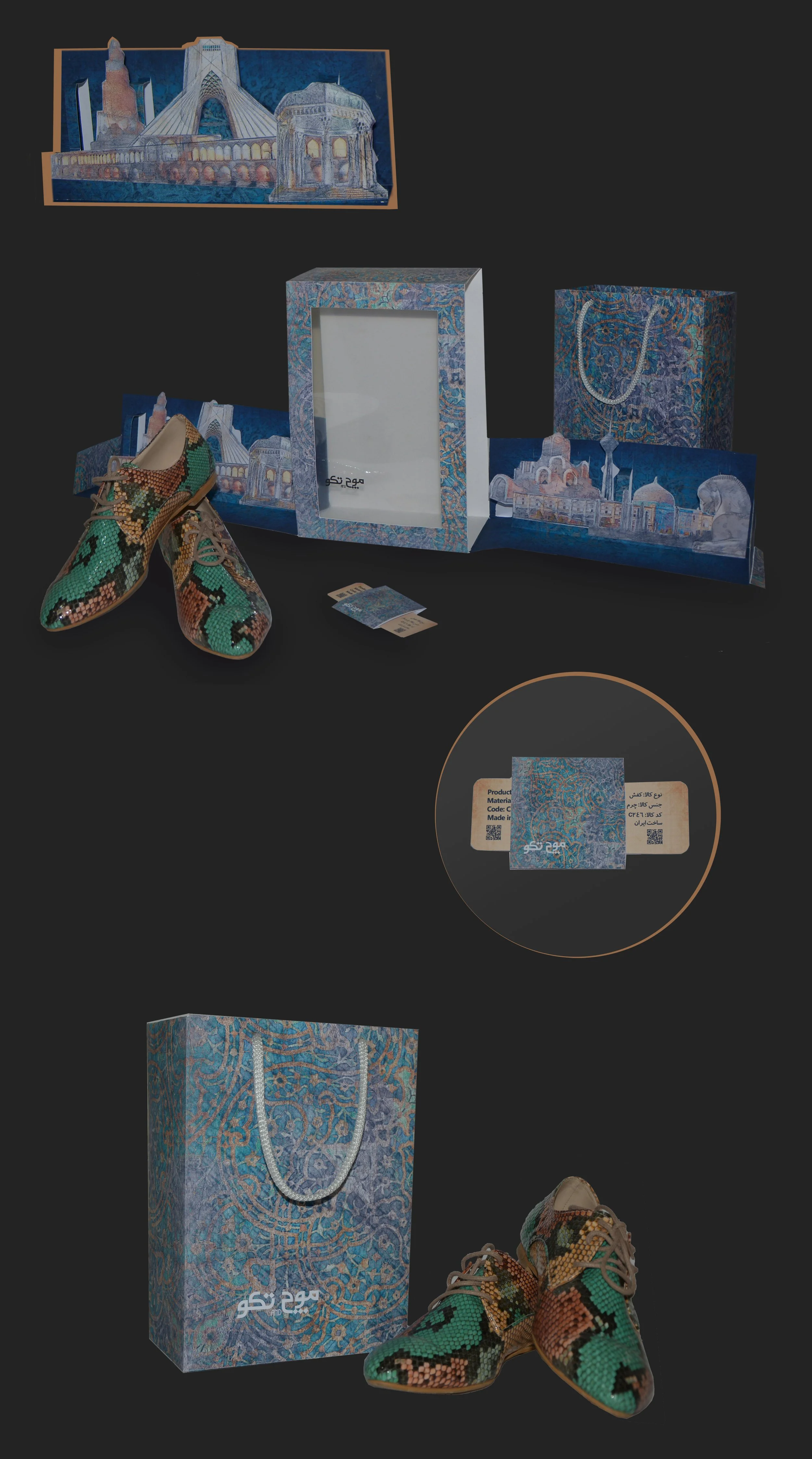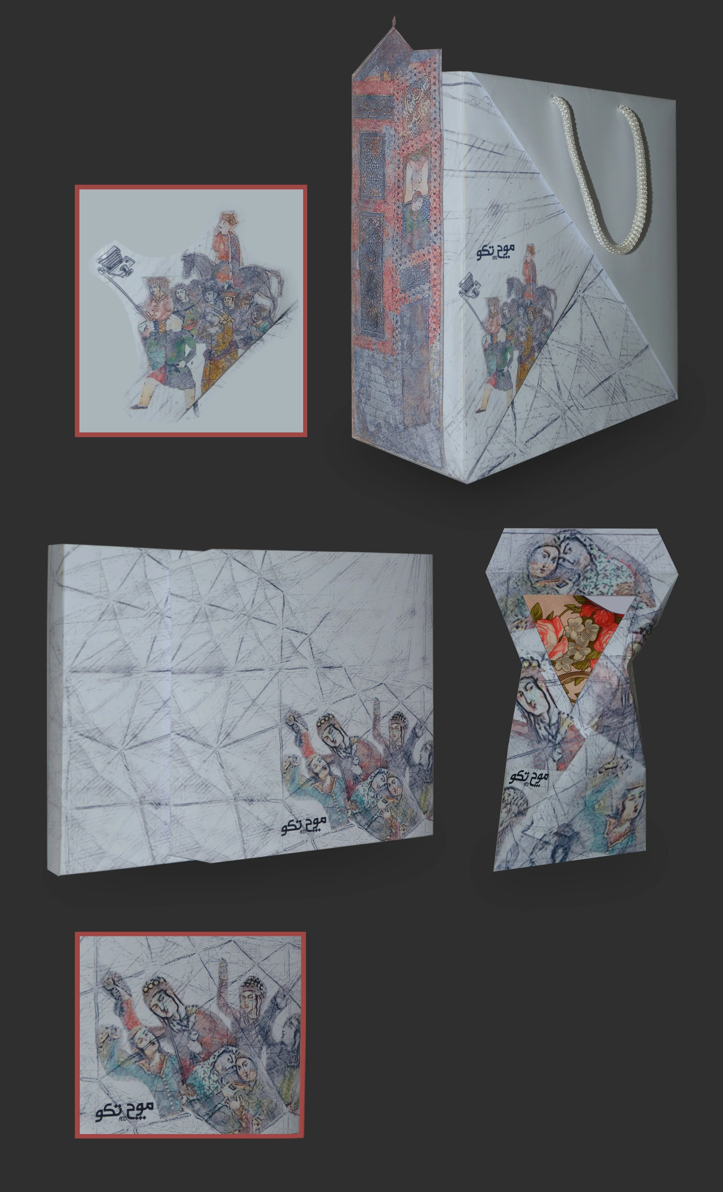 These are selected packaging designs created for the apparel brand Mooch and Takoo. The brand focuses on clothing inspired by traditional Iranian attire, motifs, and symbolic elements rooted in Iranian art and culture.